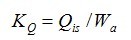 式中,KQ為泵在一定入口壓力下的單位功率抽氣量,單位為m3/(KW·h);Qis為該入口壓力時泵入口處的氣量,單位為m3/h;Wa為該入口壓力時的軸功率,單位為KW。